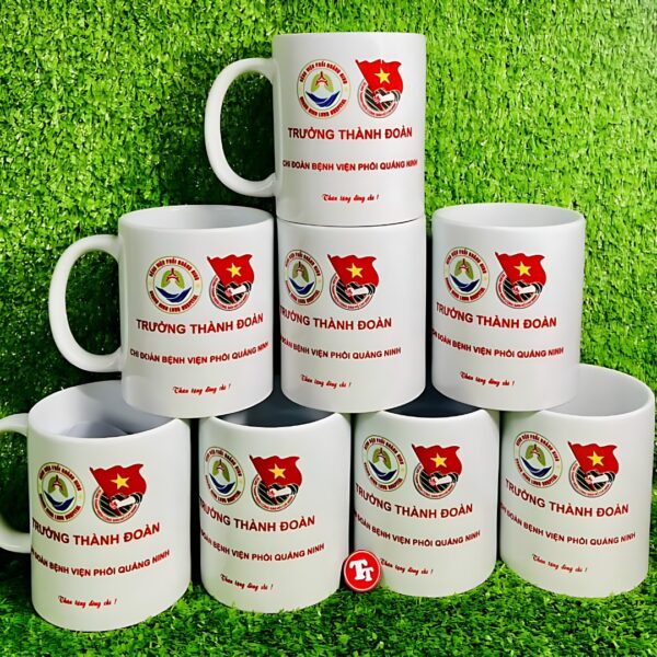 Đồ dùng văn phòng mang dấu ấn công ty: Trang bị ly sứ in logo cho nhân viên sử dụng tại văn phòng, tạo sự đồng bộ và chuyên nghiệp.