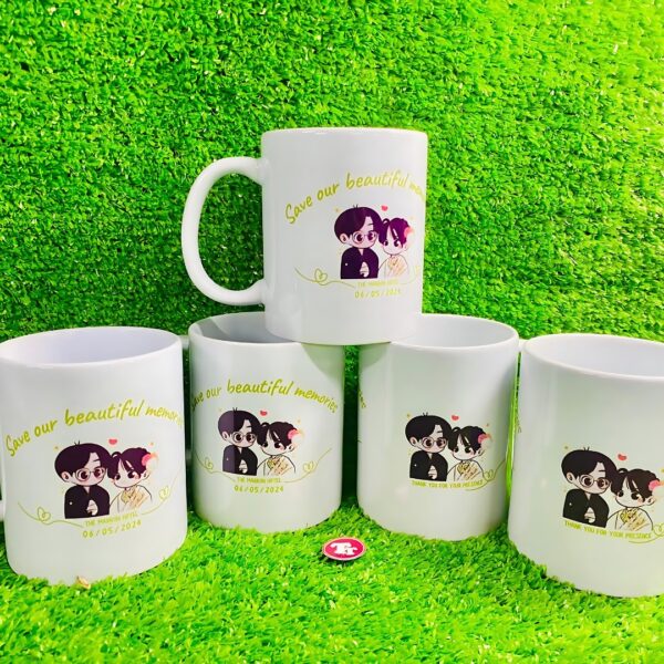 Quà kỷ niệm: In hình ảnh cặp đôi, ngày kỷ niệm quan trọng (ngày cưới, ngày yêu nhau) lên ly sứ, tạo nên vật kỷ niệm lãng mạn và bền chặt. Ly sứ khắc tên cũng là một lựa chọn tinh tế.